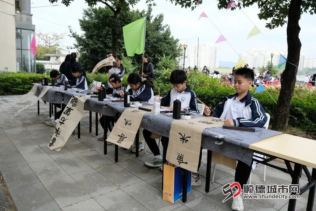 其中,容桂城西小学学生的《水乡墨韵》清新雅致,将岭南水乡的温婉意境跃然纸上;容桂泰安小学的《创意版画》奇思妙想,以独特视角展现童真童趣,引得众多现场观众驻足观赏、赞叹不绝。