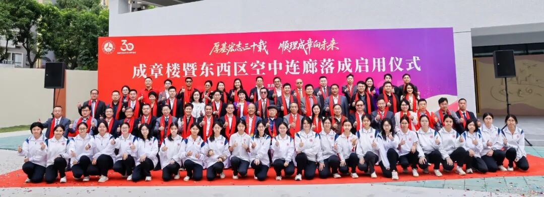在海内外校董与乡亲的共同见证下,作为李兆基中学校庆的“重量级献礼”,总投资1.6亿元的成章楼暨东西区空中连廊于校庆期间落成启用,为这座历经三十年积淀的校园换上“新装”,为学校下阶段高品质办学奠定基础。